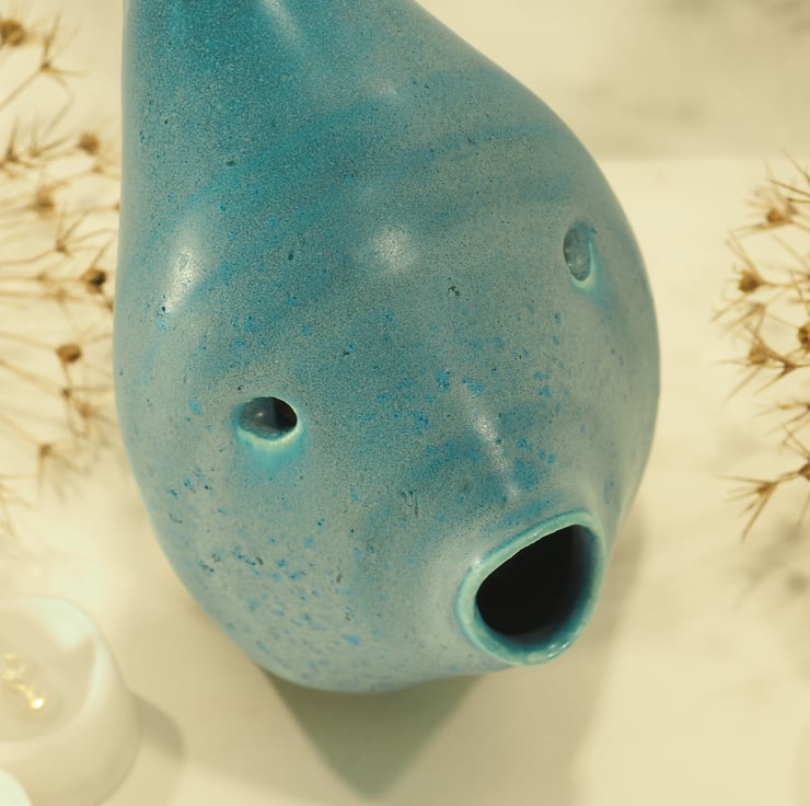 I love making them. It is great fun watching their expressions and personality emerge from the clay. Each one is truly unique. I make them by throwing on the wheel and then alter the shape while it is still wet - the wetter the clay, the more emotional the fish tend to be ! Finishing touches like piercing the eyes come later when things have firmed up a bit.