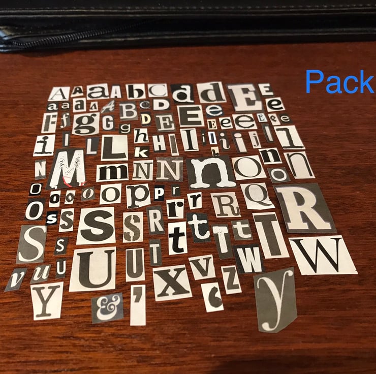 Scrapbooking Paper Pack Black White Alphabet Letters Decoupage Pack 100 Letters