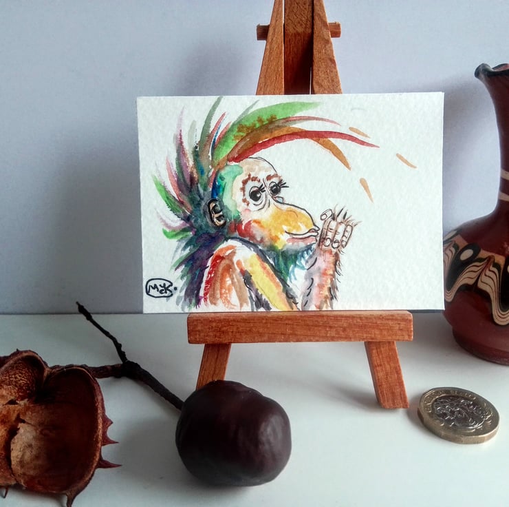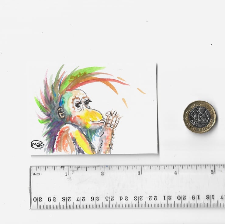 Orangutan Monkey Miniature ACEO painting. FREE UK SHIPPING