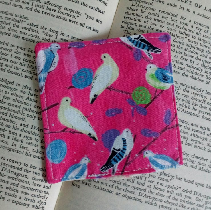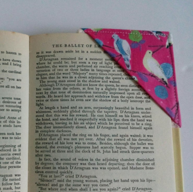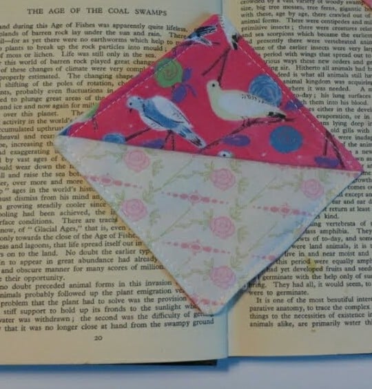 This is a cloth corner bookmark which is approx 3.5" square and fits over the corner of the page you want to bookmark.