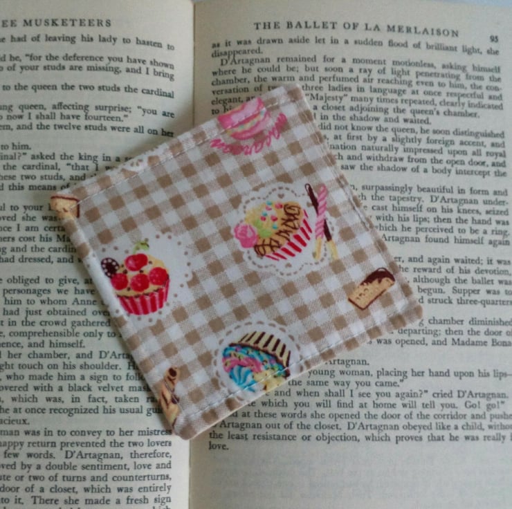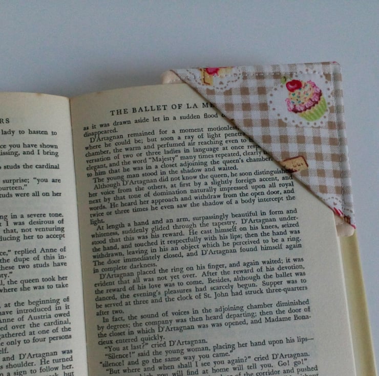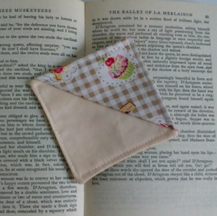 This is a cloth corner bookmark which is approx 3.5" square and fits over the corner of the page you want to bookmark.