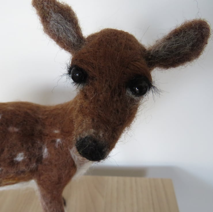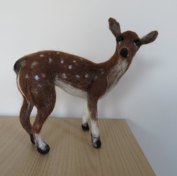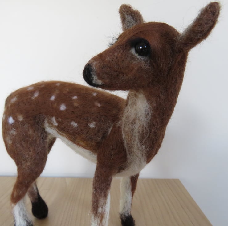 Needle felted deer, standing a little over 20 cm . She developed a lovely character as I made her, and would be a super gift for a nature lover. She would also blend in very well at Christmas time with a woodland theme.