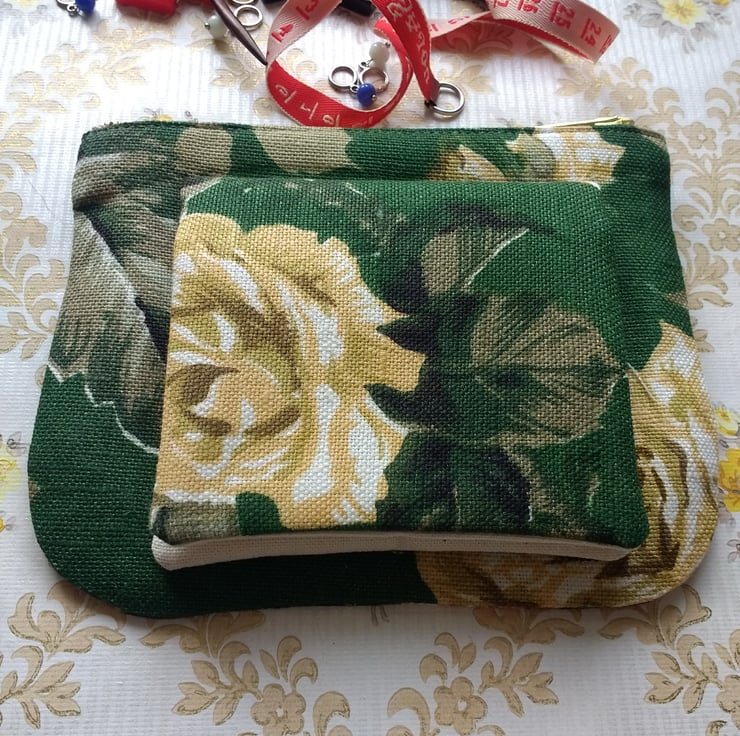 Made from time softened and re-purposed vintage furnishing fabric, this little notions pouch and needlecase set is the perfect addition to any crochet or knitting bag and will store an assortment of accessories and needles for darning or seaming as well as adding a little vintage aesthetic.