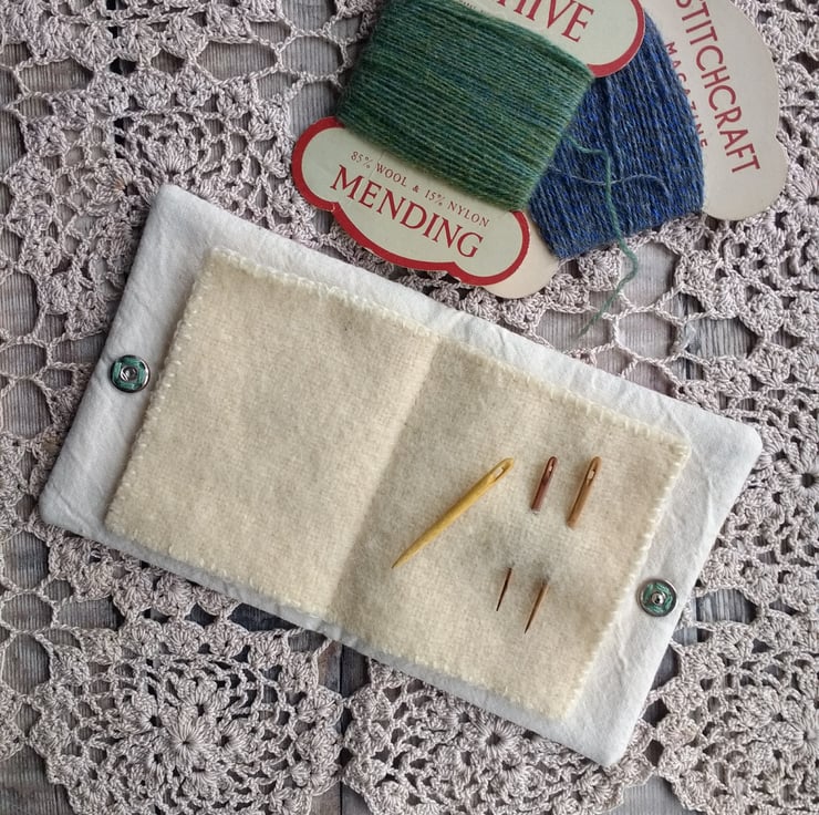 Between the outer and lining fabric is a piece of fleece made from natural fibres so the needlecase is nice and plump. Needles can also be pinned to the lining, the layer of fleece will help prevent them poking through to the front and is kept closed with a pair of hand sewn vintage snap fasteners.