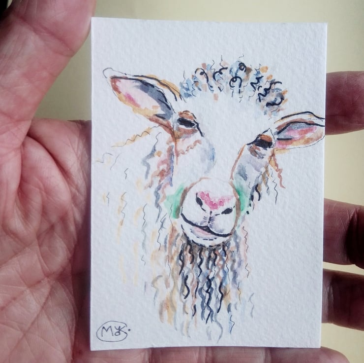 Original artwork of a lovely sheep. I have used professional artist pens and artist grade watercolour paints, on textured 300gsm watercolour paper. This is an original not a print!