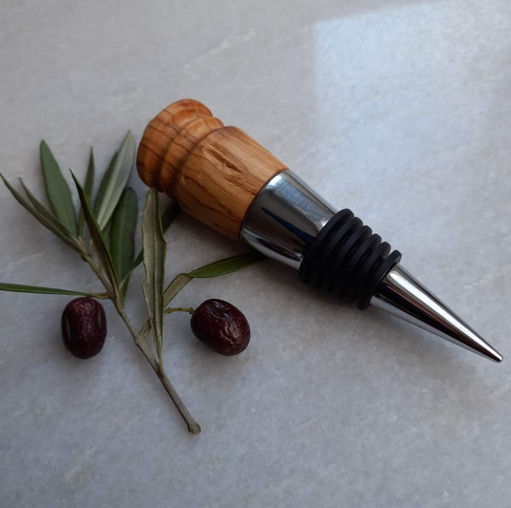 This is a handmade woodturned bottle stopper made from stunning Venetian Olive Wood. The shape is interesting and easy to hold. It would be a great addition to any kitchen and would make a perfect present for any wine lover!