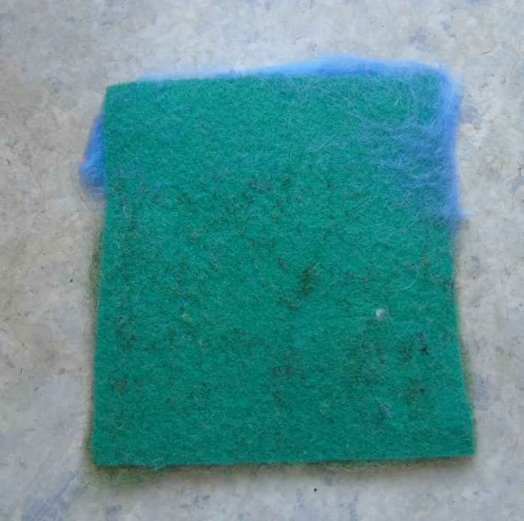 Needle felted with unspun wool onto a piece of pure wool 100% wool fabric.