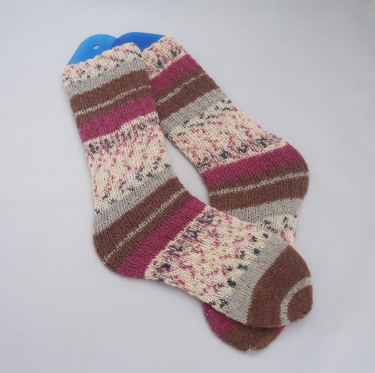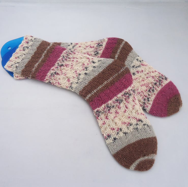 These socks are hand knitted with wool and poliamid yarns.