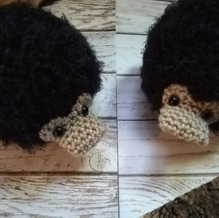 These Niffler Puffs are made using a beautiful fluffy black yarn.