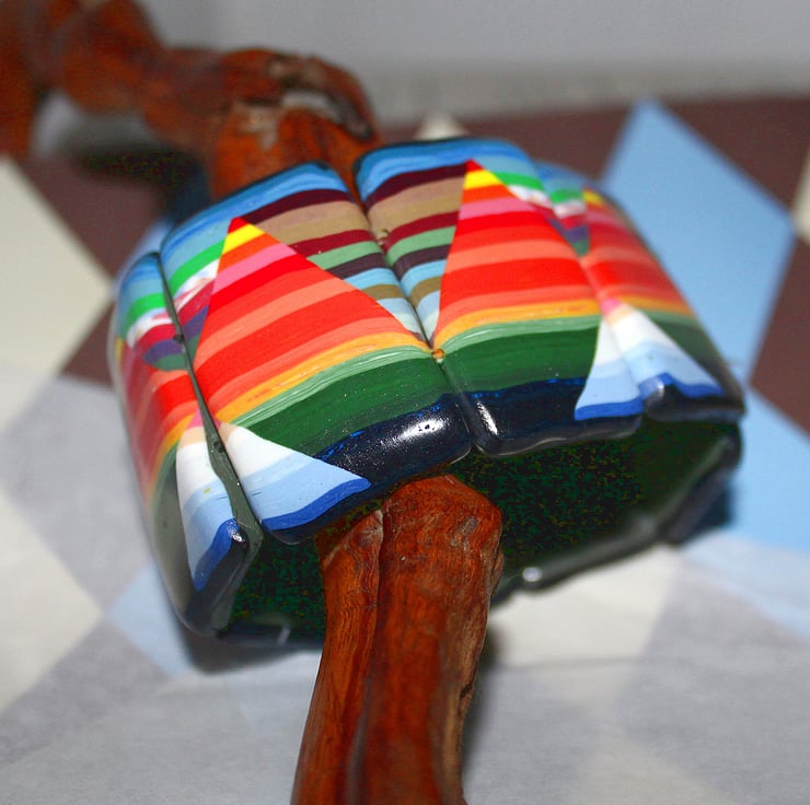 A dynamic and exciting looking bracelet of abstract patterns in rich and lively colors. This is a handmade, unique and original piece.