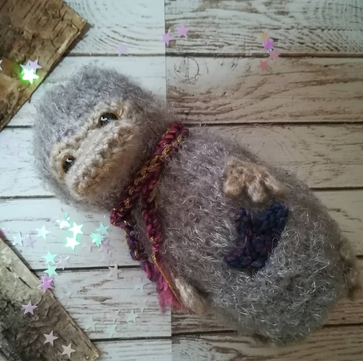 The faun measures about 11 x 5 inches, the Niffler measures about 8 x 4 inches and the puff is about 5 x 4 inches.