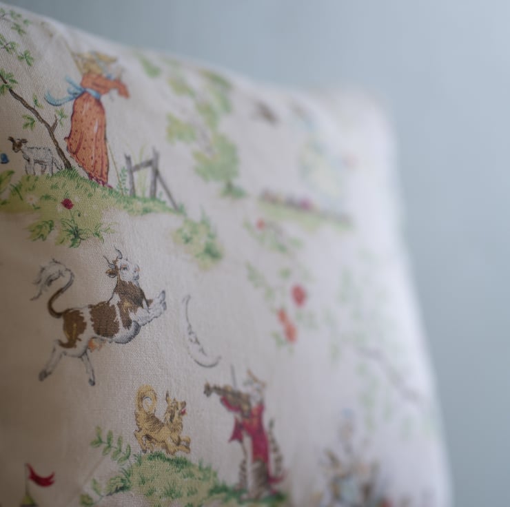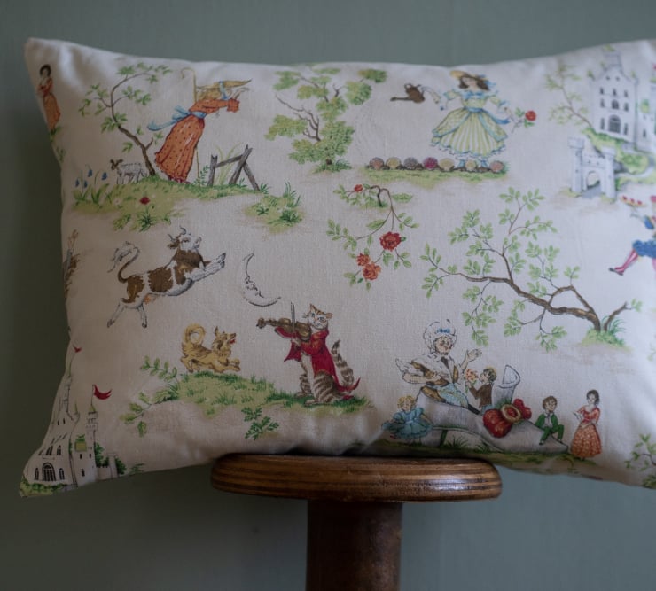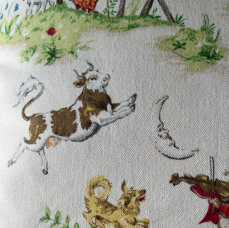 Made from Margarita Cushing screen printed 100% cotton, "Over the Moon".