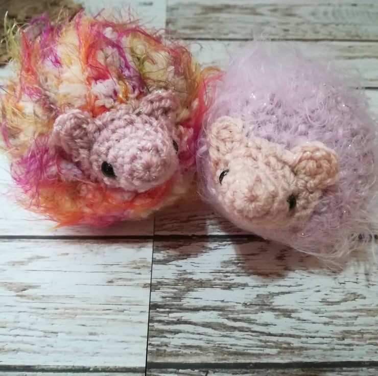 This super cute sweet of mini puffs are made in beautiful soft pink yarn.
