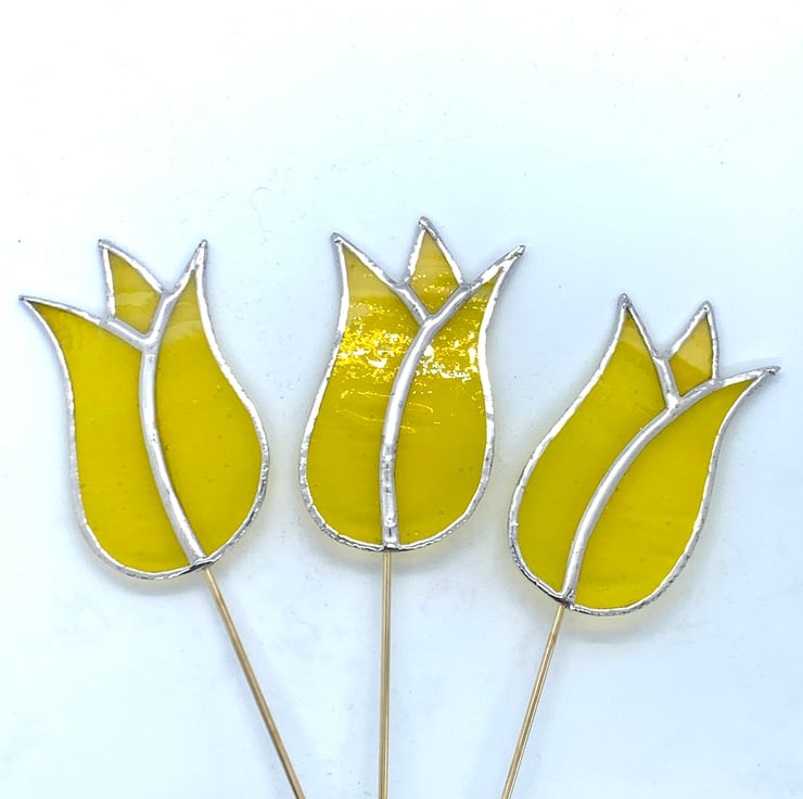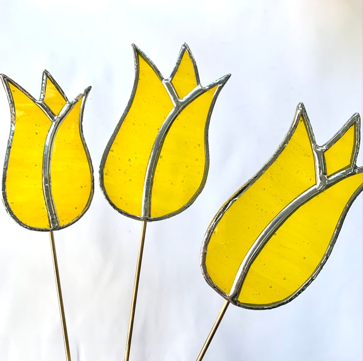 The glass used for this tulip is yellow sea glass which is slightly opaque.