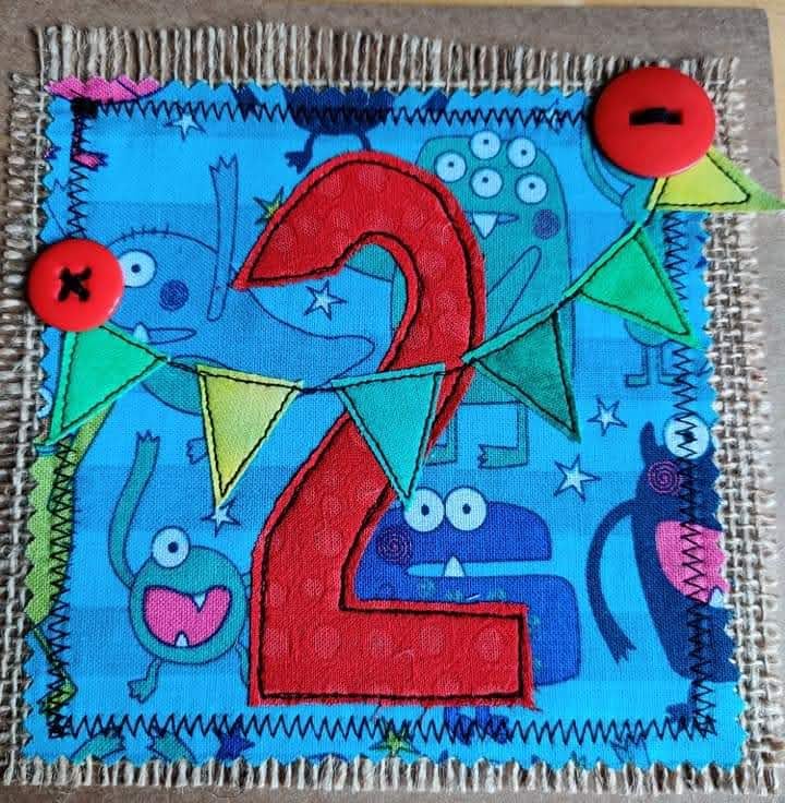 Unique, handmade appliquéd fabric age birthday cards for children.