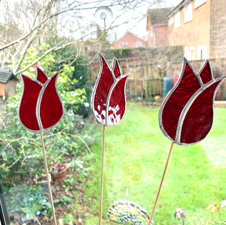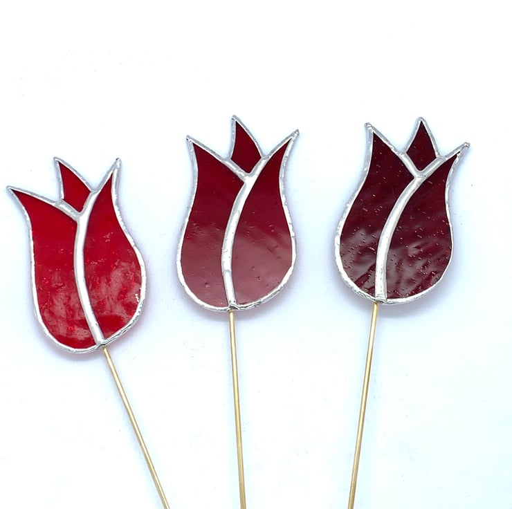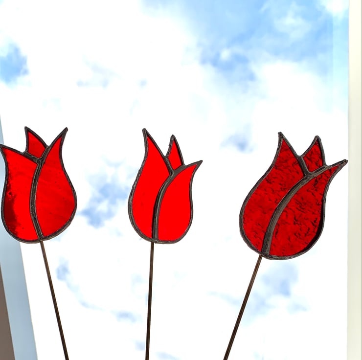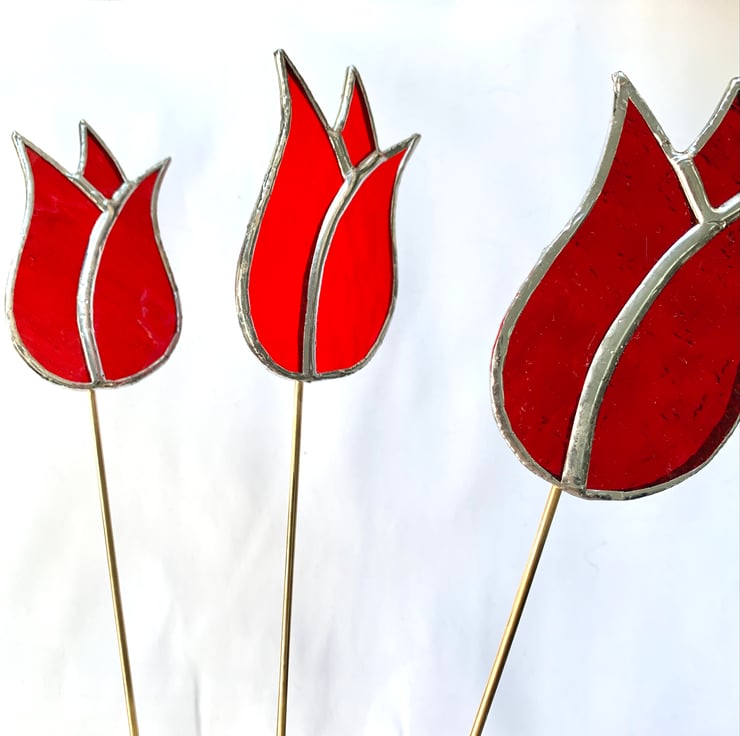 I have 3 red tulips available, each are made in a different type of red glass. Yours will be one of the tulips shown.
