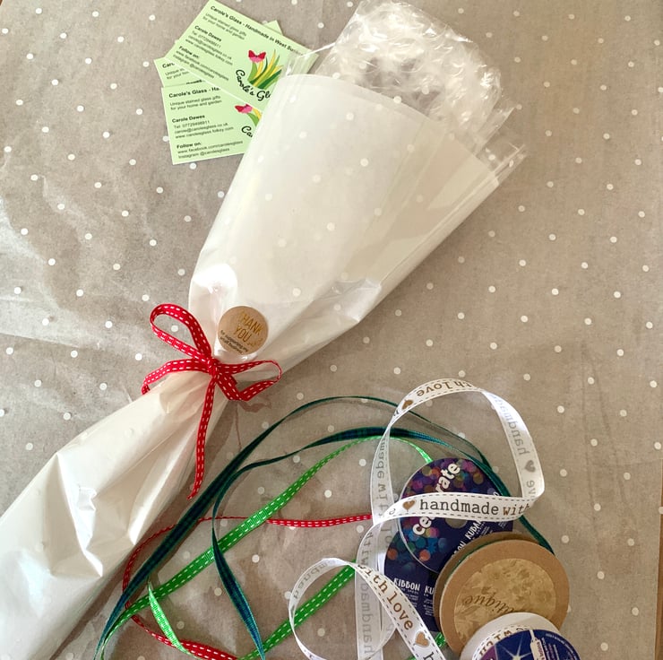I wrap in tissue, cellophane and add a ribbon so they look like a real flower. I will soon also be able to offer a selection of stickers - Happy Birthday, Happy Mothers Day, Made with Love, Happy Valentines Day.