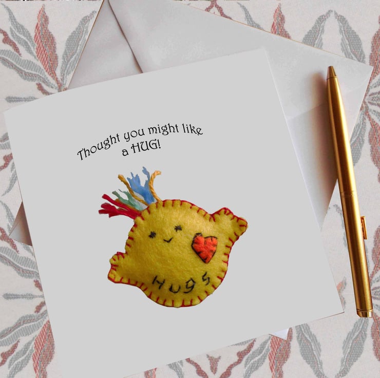 If you like the 'hugs' card, you may also like our handmade textile 'hugs' (photo 2). These are available on another listing in our shop.