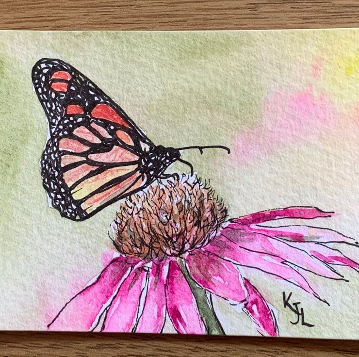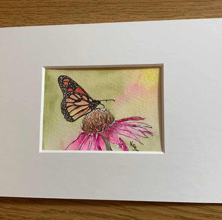 Original artwork of a beautiful butterfly sitting on an echinacea flower. I have used professional artists pens and artist grade watercolour paints, on textured white 300gsm This is an original not a print!