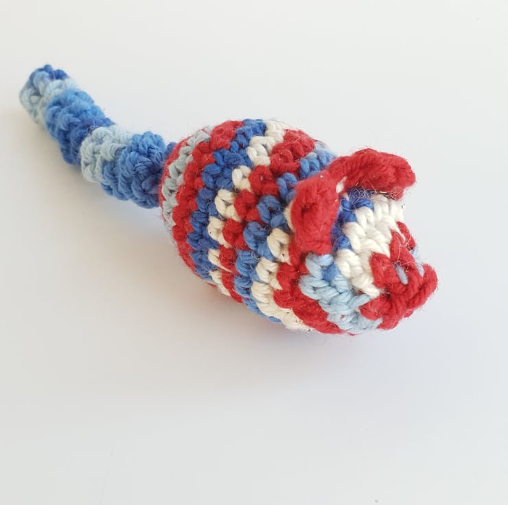 The mouse is crocheted all as 1 piece including the ears and tail.