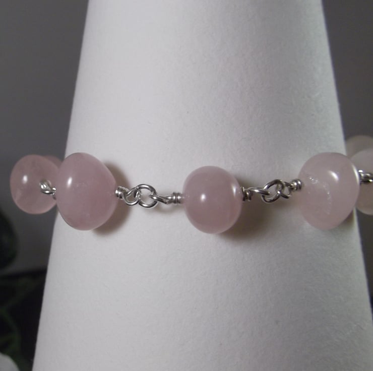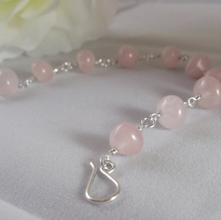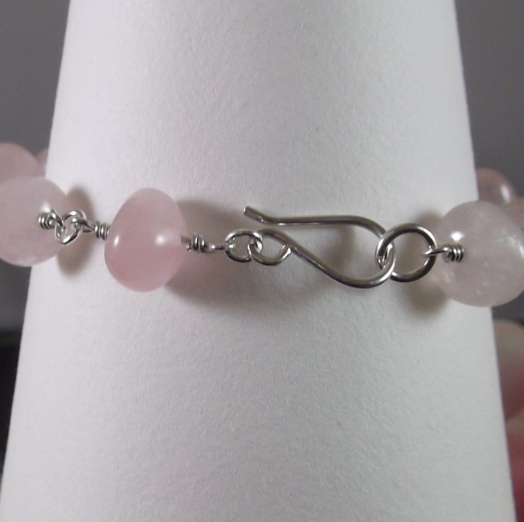 This pretty bracelet has been made using rose quartz nugget beads and sterling silver wire.
