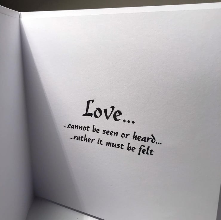 You - heart - Me - wordart Valentine card with a piece of heart shaped sea glass forming the centre, the card measures 6x6 and the words inside the card read 'Love... cannot be seen or heard.. rather it must be felt', high quality card with paper insert inside supplied with white envelope