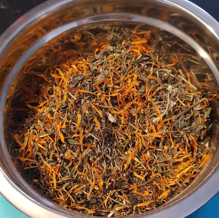 Milk thistle, Rosemary, Dandelion leaf & root, Peppermint, Ginger, Calendula.