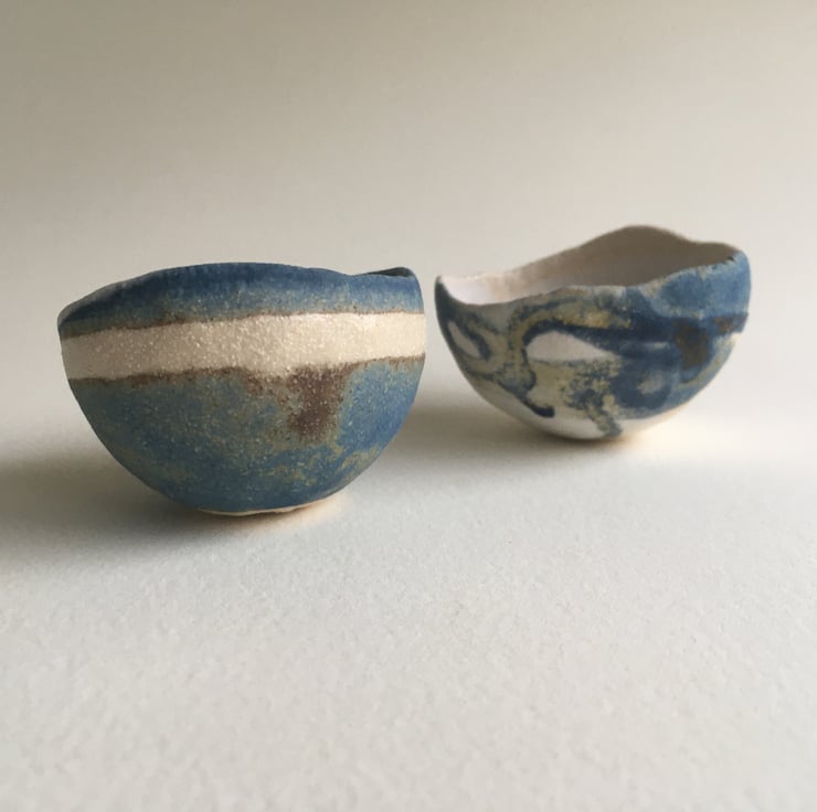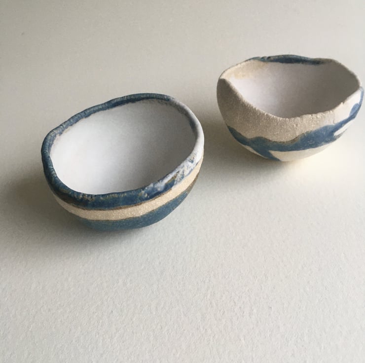 A pair of glaze test bowls.