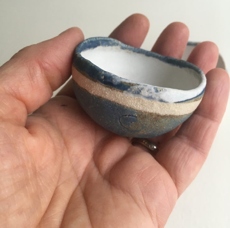 Seascape blue glazing on the outside and white matt inside.