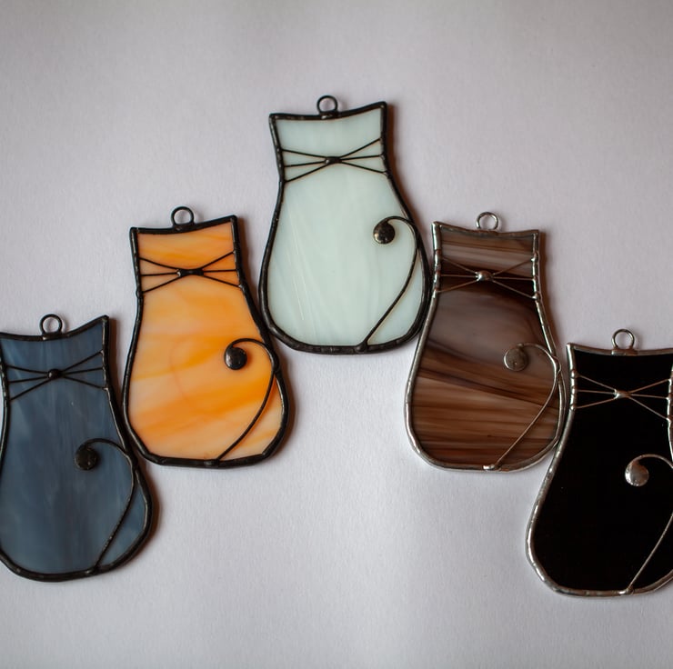 Handmade stained glass suncatcher. Made of opalescent glass using Tiffany technique. Looks lovely hung on the window, wall or mirror. 8x5cm approx.