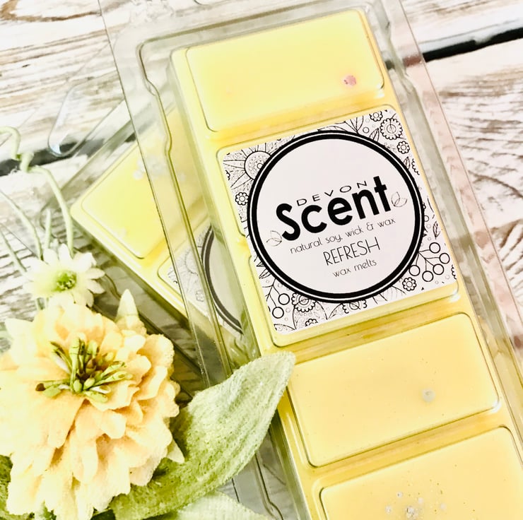Our highly fragranced long lasting Refresh Snap Bar Wax Melts have a zesty, fresh fragrance with top notes of bergamot, grapefruit, lemon rind and citron, mid notes of pink grapefruit, iris, light ozonic and lemongrass finishing with base notes of sugar cane, vanilla and cypress......it’s a beautiful refreshing scent that would fragrance any space in your home or work place.