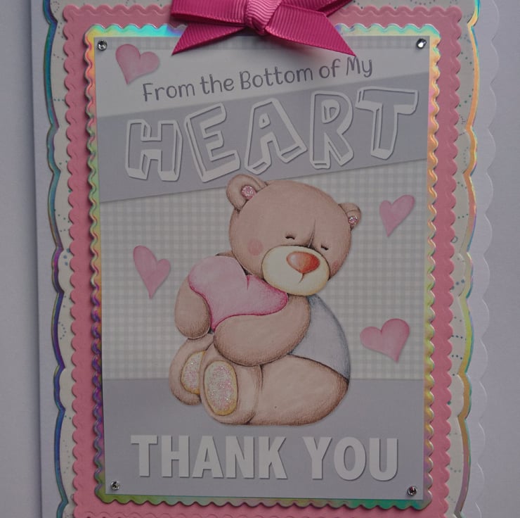 Thank You Card Teddy Bear From The Bottom Of My Heart 3D Luxury Handmade Card