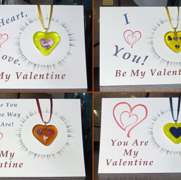 Want a unique way of sending a Valentine message to your special person? How about this translucent amber Fused Glass Heart on a card.