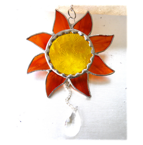 I've suspended a glass crystal drop from the bottom of the sun. This will shine and catch the light rather beautifully.