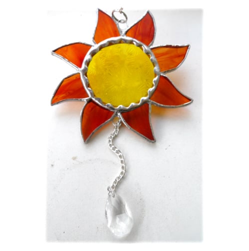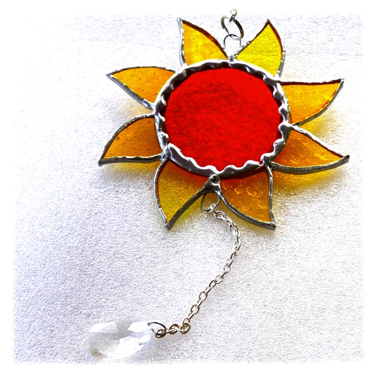 A silver coloured little chain is securely attached by solder to the top of the Sun with a little ring to hang it.