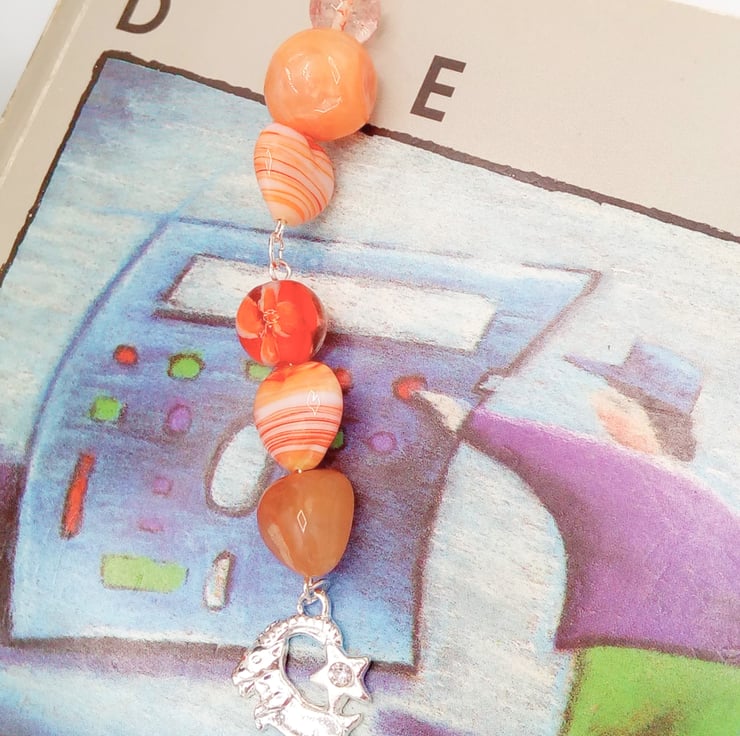 Orange and Peach Beaded Bookmark With Silver Capricorn Charm, Teacher's Gift, Reading Accessories, Book Lovers Gift, Thank You Gift, Birthday Gift