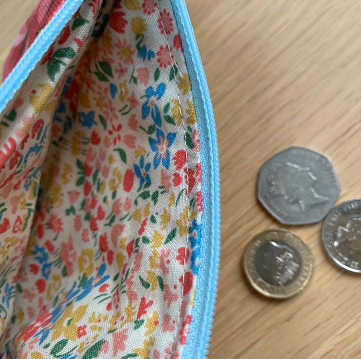 The purse is fully lined in floral cotton so there are no raw edges on show.