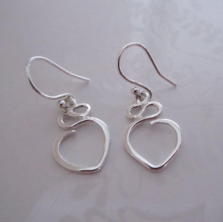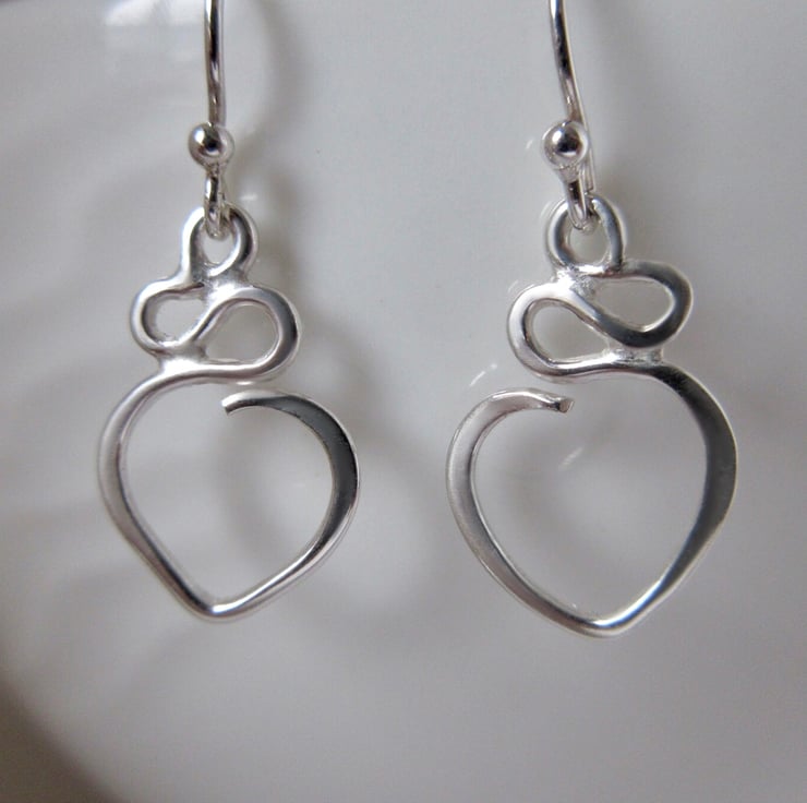Sweet little squiggle heart earrings, hand forged from sterling silver to form undulating curves before ending in an open heart form.