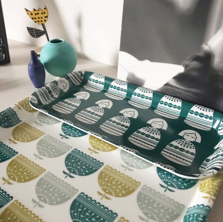The teal Babushka tray sits beautifully with my 'Little Flowers' square serving tray in teal, olive and grey and with my Babushka teal, red or yellow tea towels which are also listed within my Homeware page.