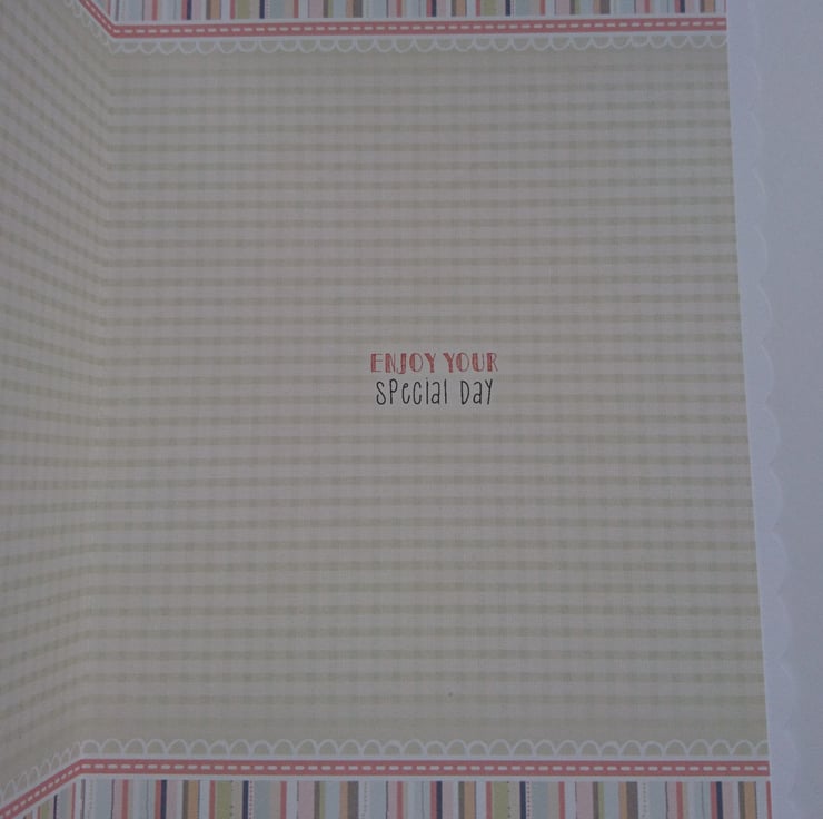 The card has a full colour double insert on the inside with a printed greeting that says "Enjoy your Special Day" and there is plenty of room for you to write your own special message.