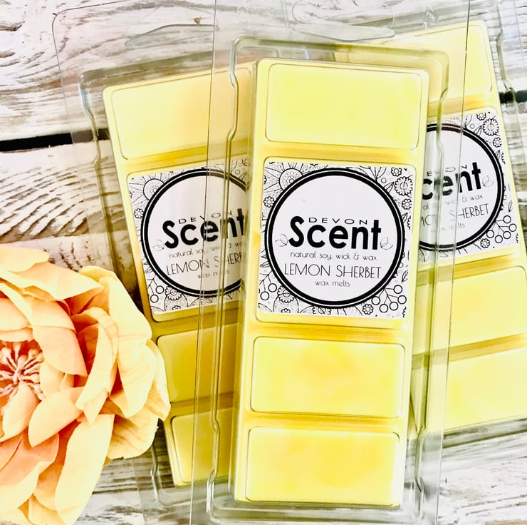 Our highly fragranced long lasting Lemon Sherbet Snap Bar Wax Melts have a zesty accord of juicy lemon and lime and a splash of sweet orange with hints of red fruits, strawberry & raspberry followed by a fizzy sherbet aroma that is sure to tantalise the senses.