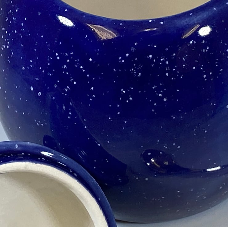 This ceramic sugar bowl with lid and spoon is finished with a high gloss confetti glaze, dishwasher and microwave oven safe. Can also be used for storing sweeteners or a range of different sugars. Available in a wide range of different glaze colours.