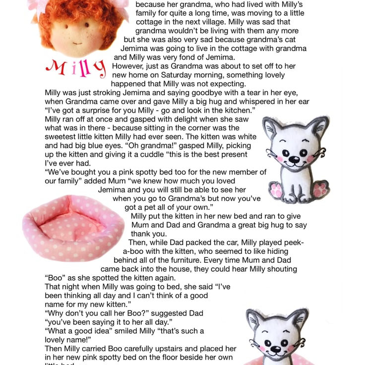 There are other children in Maisy’s class at school - Violet, Billy with his pet rabbit, Amber, Tilly, Rosie and her kittens, Amelia, Ruby, Marigold, Bobby with Max the dog, and the twins Oliver and Olivia, who have a puppy called Oscar. The dolls are all 26cm tall and baby Daisy is 16cm. Maisy and Mo love nothing more than having adventures with their friends. You can read about their adventures on my Facebook and Instagram pages - Maisy Muffin Rag Dolls and on my Mulberry Green Pinterest boards.