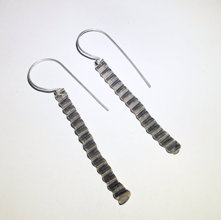 These lovely earrings have been handcrafted from sterling silver which has been repeatedly hammered and then corrugated to create interest.