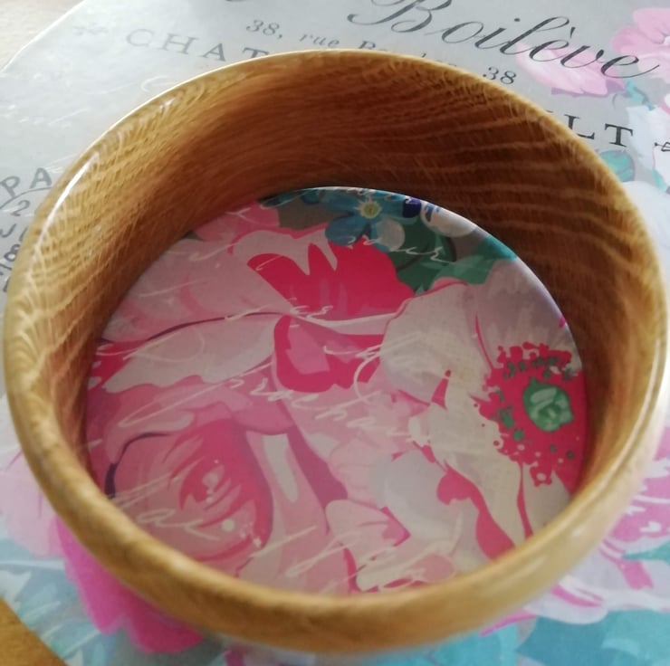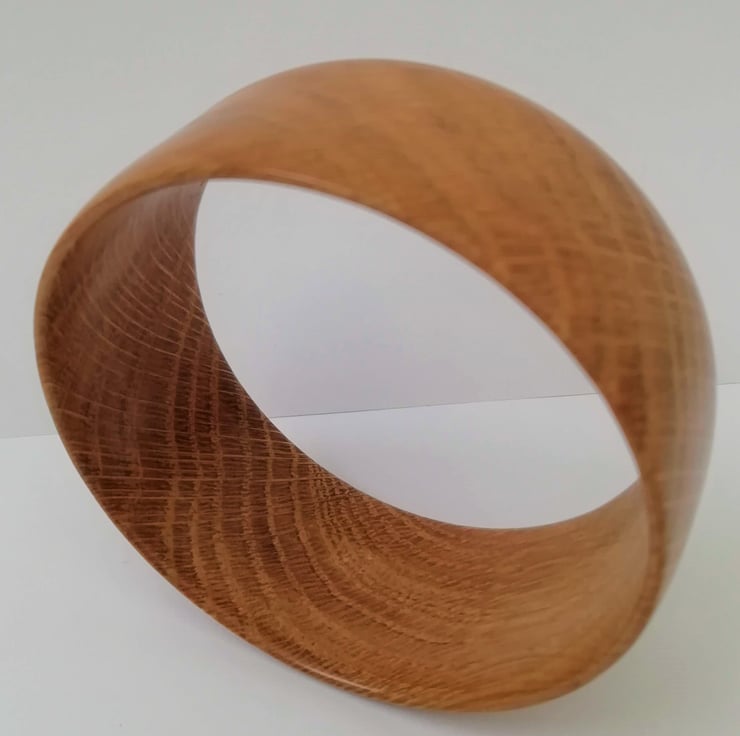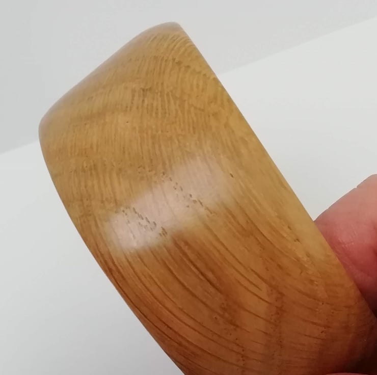 This beautiful Oak wood bangle is hand turned on the lathe.