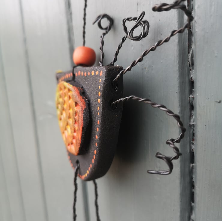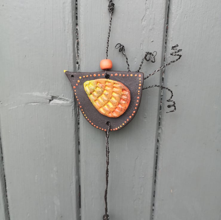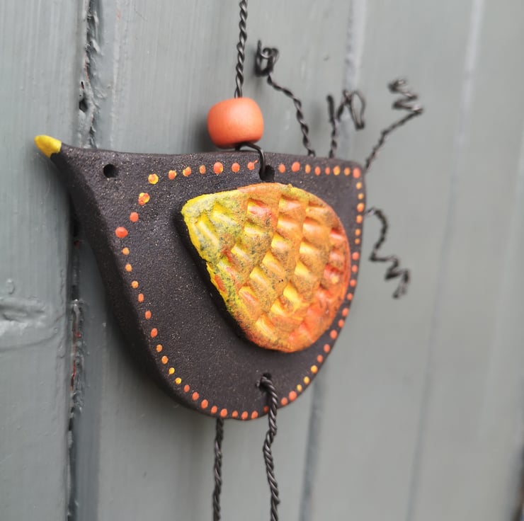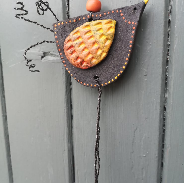 Mixed media bird wall hanging, hand made and decorated here at the Station Cat Pottery,