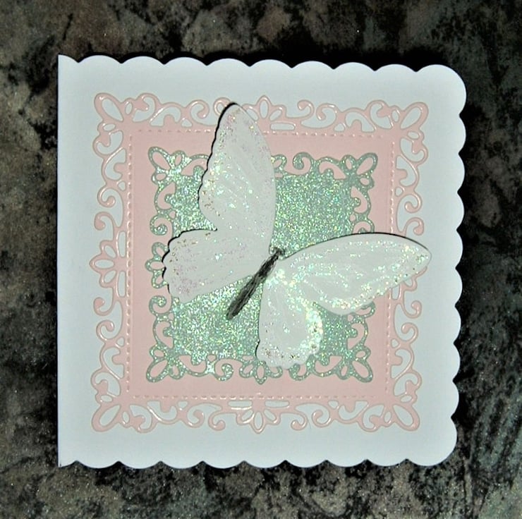 It measures approximately 5" x 5" and comes with a quality white envelope in a clear polybag to protect it.