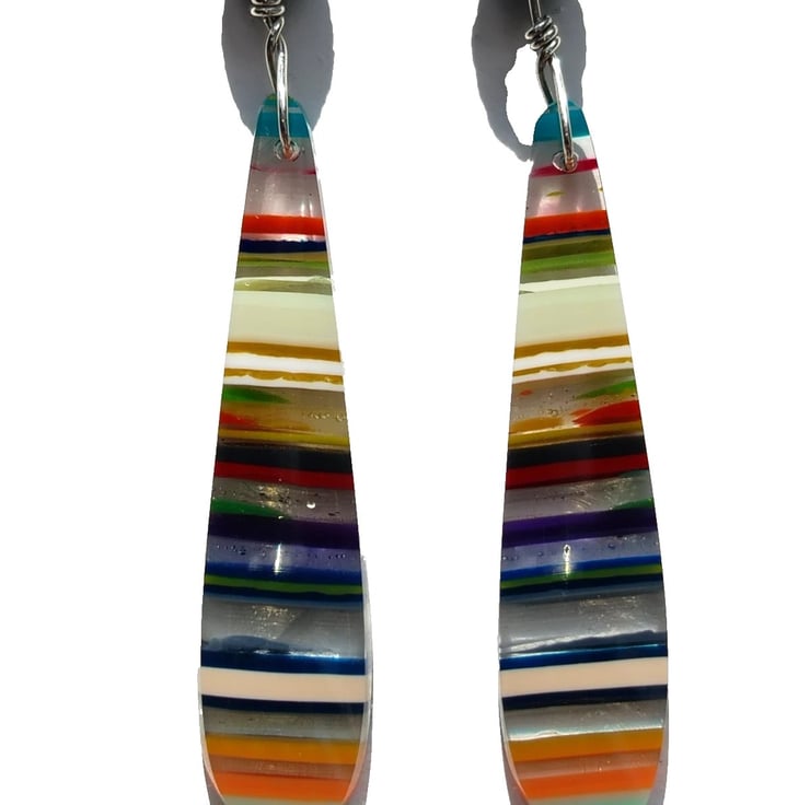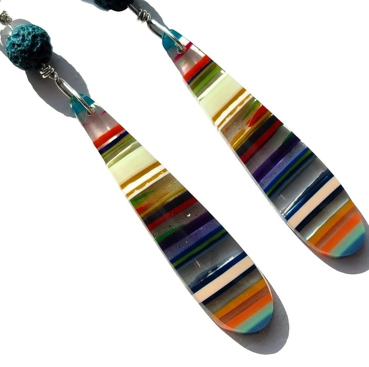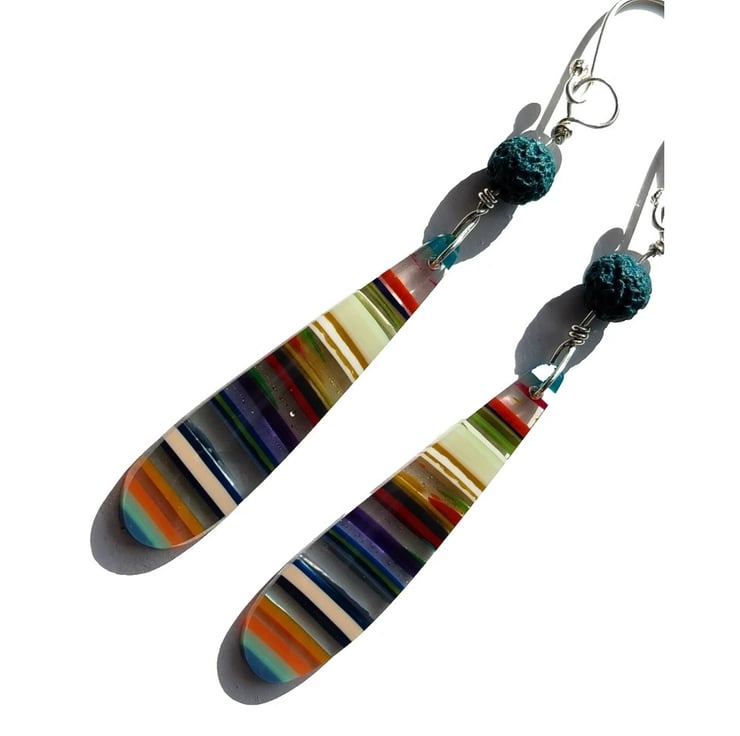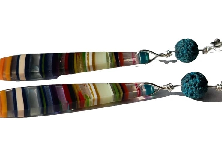 Made from years and years of build-up, this paint has now hardened sufficiently to be cut and polished. Lapidarists slice them up into pieces and shape them so that all the layers of colour can be seen. Jewellery makers then buy these smaller pieces to incorporate them into one-off pieces of jewellery for you!