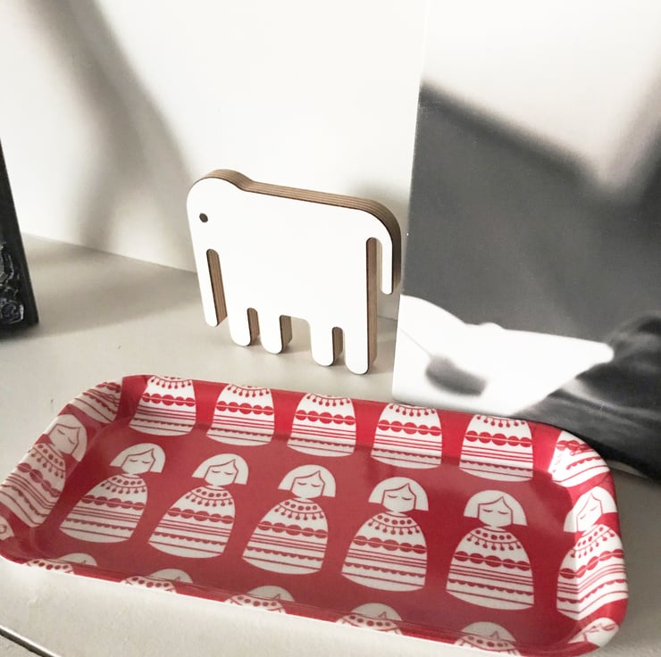 'Red Babushka' Mid Century serving tray or home office desk tidy