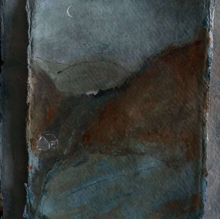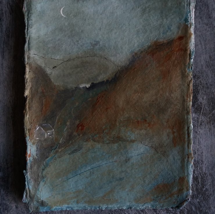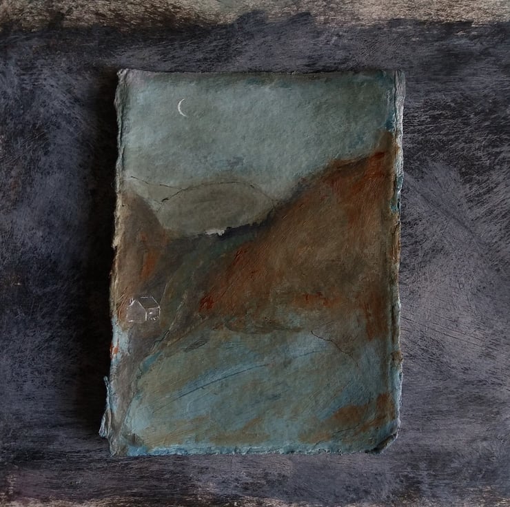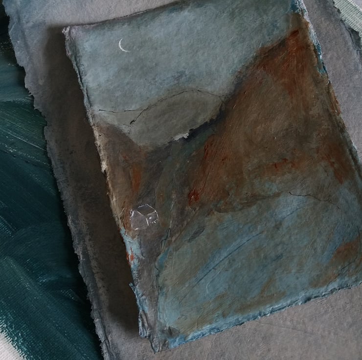 created using gesso, watercolours, acrylic paints, and ink. on a sturdy khadi paper, 320g recycled cotton rag paper. with a lovely natural raggedy edge.